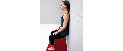 Leđima se naslonite na zid, a koljena su vam u širini kukova.