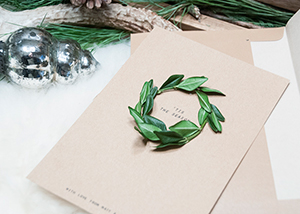 Složite od njih neki svečani oblik, vjenčić ili slično. Pričvrstite ih samoljepljivom trakom za čestitku.