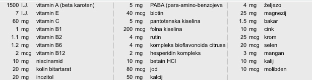 lasična formula sa 29 vitamina, minerala i bioflavonoida za svakodnevnu široku primjenu.